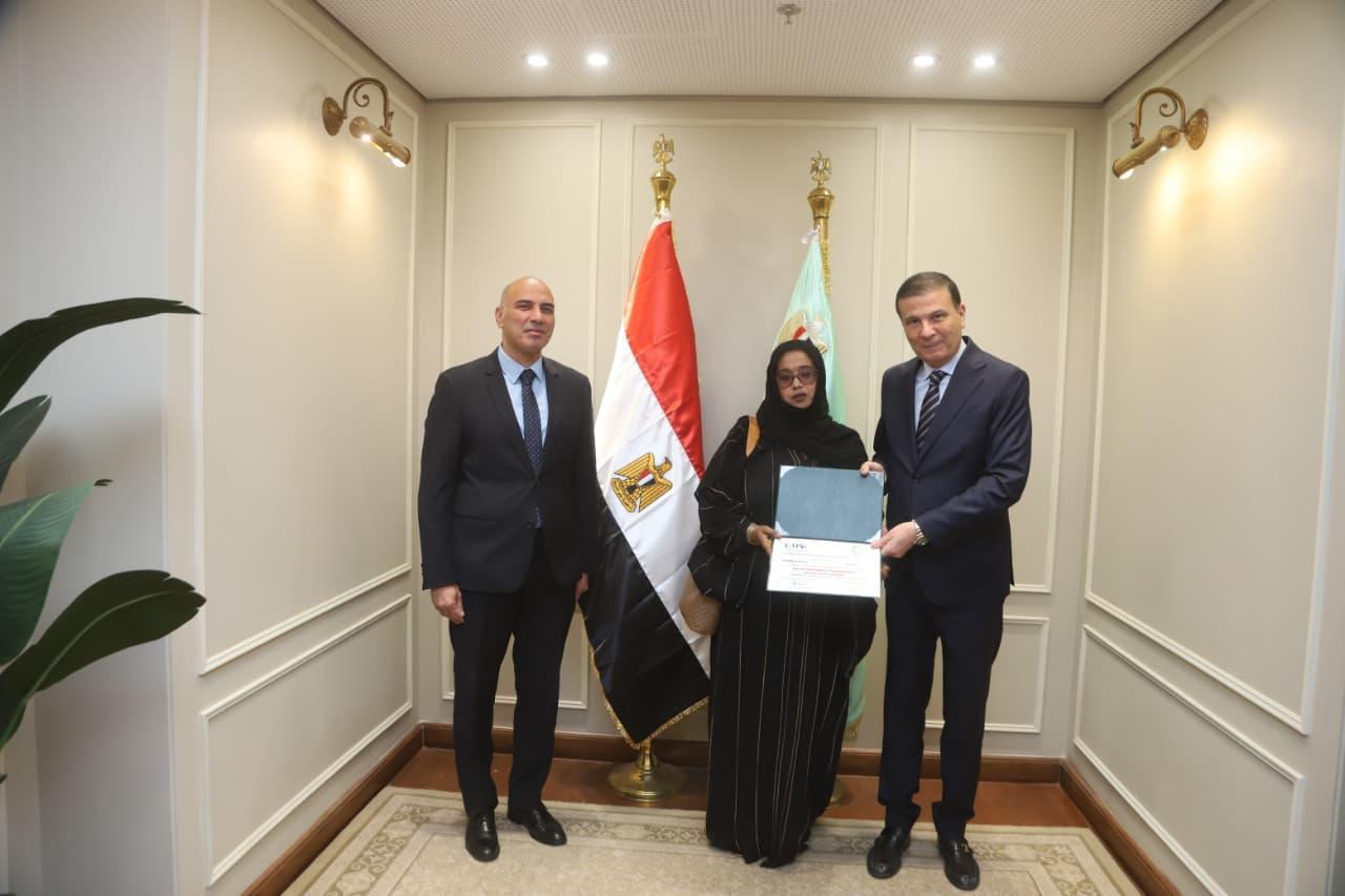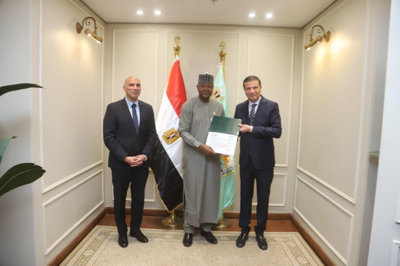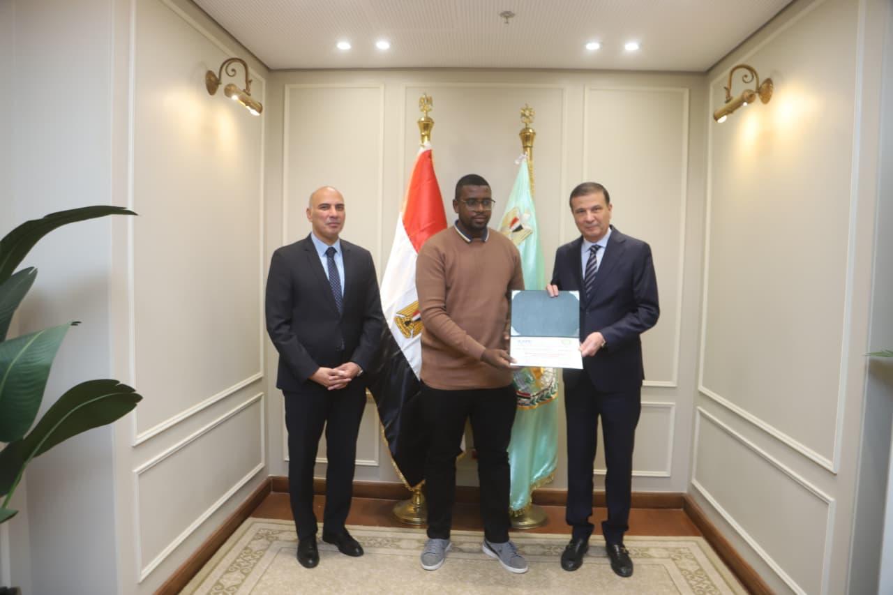 وخلال حفل الختام، قام وزير الزراعة، بحضور السفير خالد الشاذلي، نائب الامين العام للوكالة المصرية للشراكة من اجل التنمية بوزارة الخارجية، بتسليم الشهادات للمتدربين البالغ عددهم 11 متدربًا، يمثلون 11 دولة أفريقية، وهي: الجابون، النيجر، تشاد، تنزانيا، جيبوتي، زامبيا، سيراليون، غانا، مالي، موزمبيق، ونيجيريا، حيث أكد على عمق العلاقات المصرية-الأفريقية، مشددًا على أن مصر تضع إمكانياتها وخبراتها الفنية في قطاع الزراعة لخدمة أهداف التنمية المستدامة وتحقيق الأمن الغذائي في القارة السمراء.