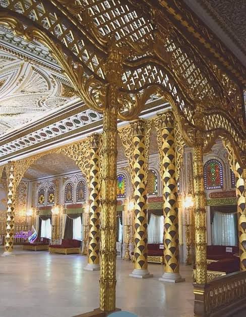 تُعتبر سرايا العرش من أكثر الأماكن فخامة داخل القصر، حيث كانت تُستخدم في المناسبات الرسمية والاستقبالات الكبرى، تتميز بزخارف ذهبية وألوان ملكية تعكس القوة والعظمة، وكانت مخصصة للجلوس الرسمي للأمير في الاحتفالات المهمة.