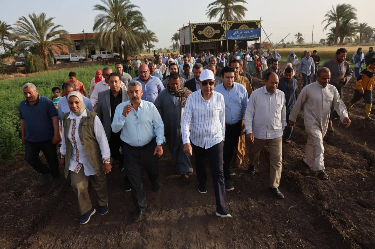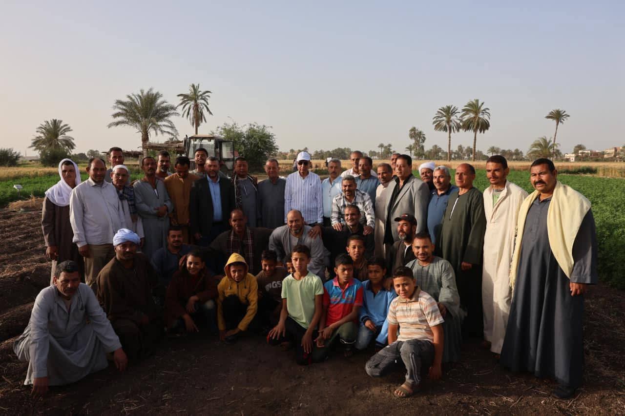 مشهد استثنائي.. محافظ المنيا يحصد القمح بيده بين الفلاحين