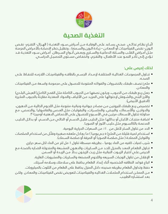 وأكدت الوزارة أن اتباع نظام غذائي متوازن يعد من أهم الركائز الأساسية للحفاظ على الصحة العامة، حيث يسهم في تقليل خطر الإصابة بأمراض القلب، والسكري من النوع الثاني، وارتفاع ضغط الدم، وبعض أنواع السرطان، إلى جانب دوره في دعم صحة القلب والأوعية الدموية والحفاظ على معدلات السكر في الدم.