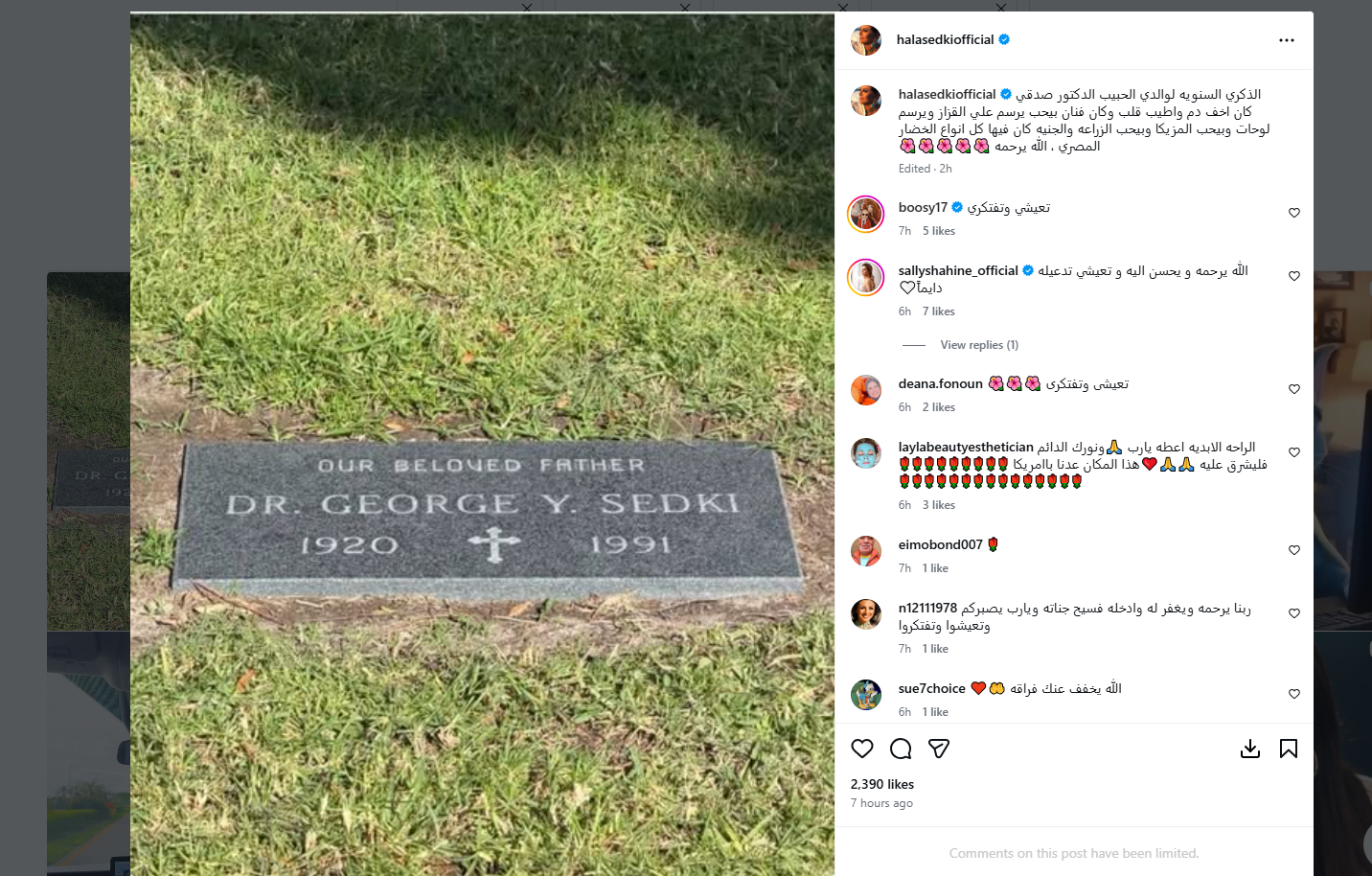 أحيت الفنانة هالة صدقي ذكرى وفاة والدها، وذلك بكلمات مؤثرة، عبر أحد مواقع التواصل الاجتماعي.