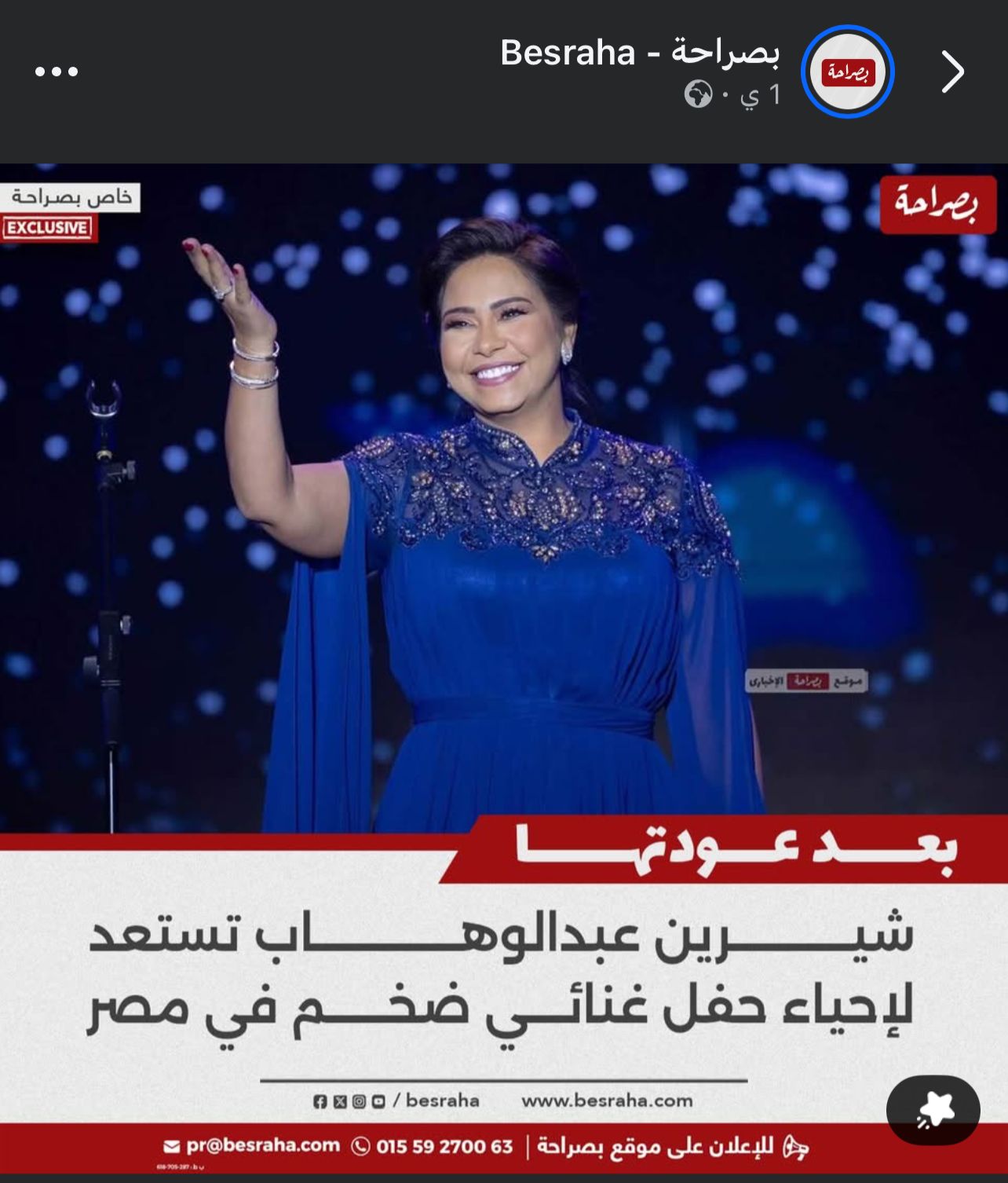 وكان موقع “بصراحة” قد كشف في وقت سابق عن عودة شيرين المرتقبة إلى الساحة الغنائية من خلال حفل ضخم، وهو ما تأكد الآن مع بدء التحضيرات والتفاوض على تفاصيل الحدث.
