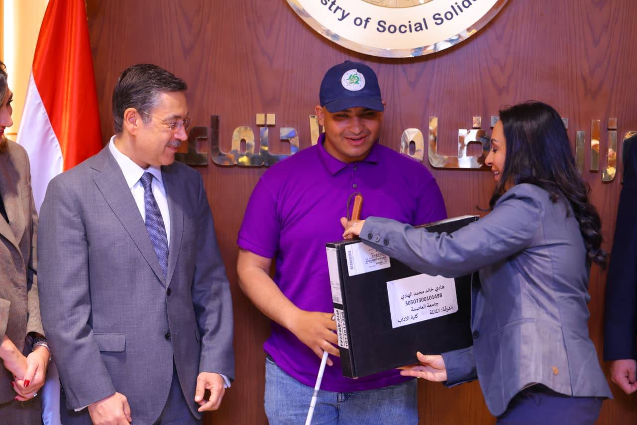 وقامت وزيرة التضامن الاجتماعي بتوزيع 150 لاب توب ناطق للطلاب من ذوي الإعاقة البصرية، فضلا عن توزيع 25 كرسي متحرك بالكهرباء للطلاب من ذوي الإعاقة الحركية.