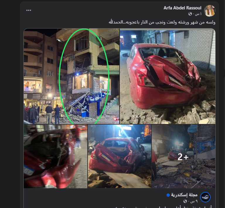 وكتبت الفنانة عارفة عبد الرسول على حسابها الشخصي بموقع التواصل الاجتماعي "فيسبوك": أسفر الحادث عن تهشم سيارة نجلي حسن مصطفى درويش، وذلك خلال انتظاره لنجله في تلك اللحظة، ولسه من شهر ورشته ولعت ونجا من النار بأعجوبة... الحمد لله.