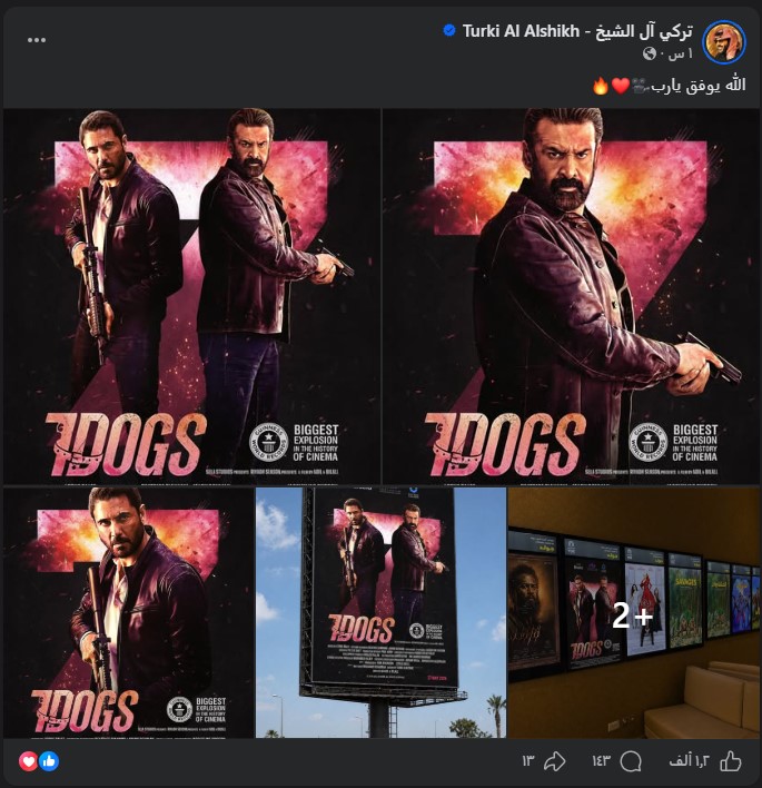 ونشر المستشار تركي آل الشيخ مجموعة صور لفيلم The Seven Dogs على حسابه الشخصي بموقع التواصل الاجتماعي "فيسبوك"، وعلق قائلاً: "الله يوفق يا رب🎥❤️🔥".