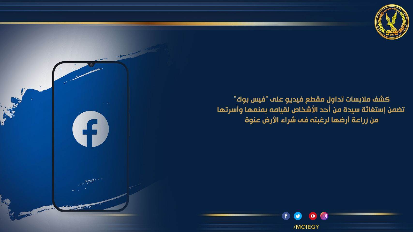 كشف ملابسات تداول مقطع فيديو على موقع التواصل الإجتماعى "فيس بوك" تضمن إستغاثة سيدة من جارها فى الأرض الزراعية لقيامه بتقطيع أشجار الفاكهة بأرضها ومنعها وأسرتها من زراعة أرضها لرغبتة فى شراء الأرض عنوة.
