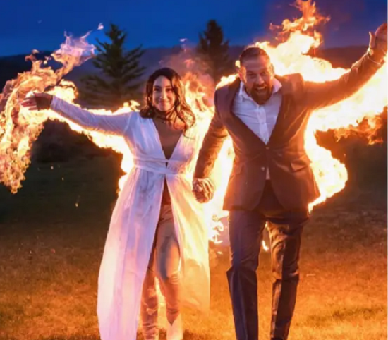 على طريقة أفلام الأكشن.. عروسان يشعلان النار بأنفسهما خلال حفل الزفاف