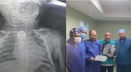 وأشار رئيس الفريق الطبي، أن المستشفى استقبلت الطفل وكان يعانى من ضيق في التنفس وتم حجزه بالمستشفىوعمل الإشاعات اللازمة وتبين وجود جسم معدني داخل الجسد وتم استخراجه.
