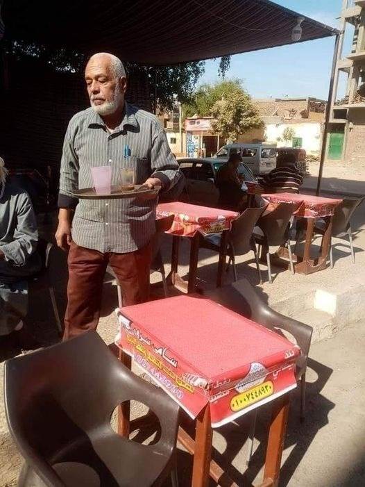 تداول رواد مواقع التواصل الاجتماعي فيس بوك صورا لأحد الأشخاص يعمل في مقهى بأسوان مدعين أنه كان مديرا للتعليم الثانوي الفني وعمل بالمقهى بعد خروجه عالمعاش.