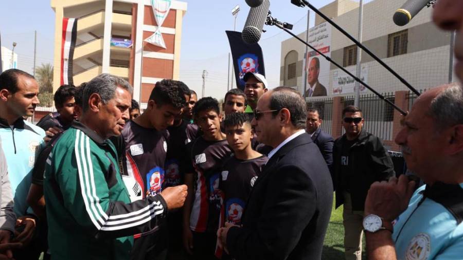 التقي الرئيس السيسي بفريق كابيتانو مصر خلال زيارته لمحافظة المنيا.