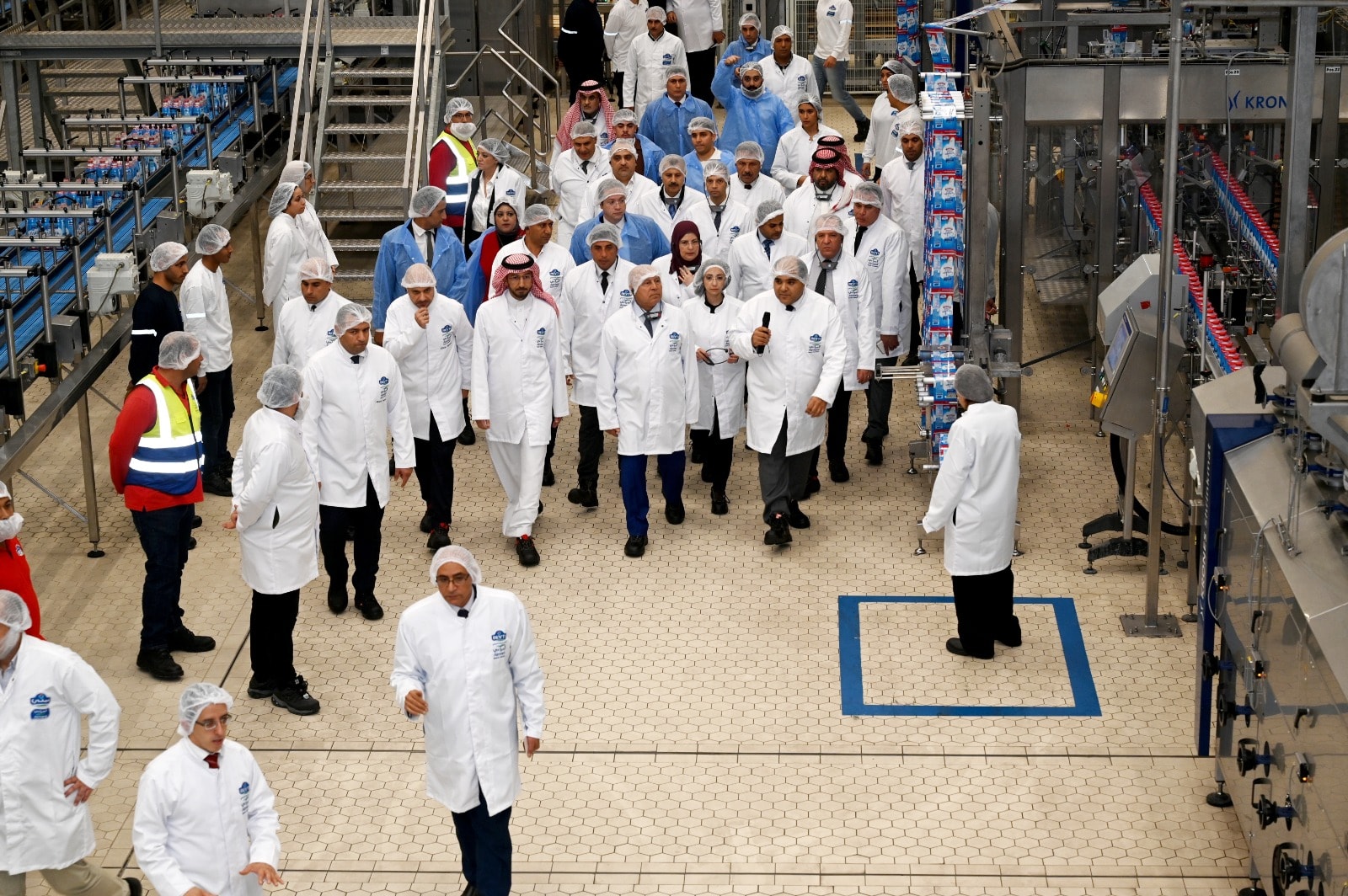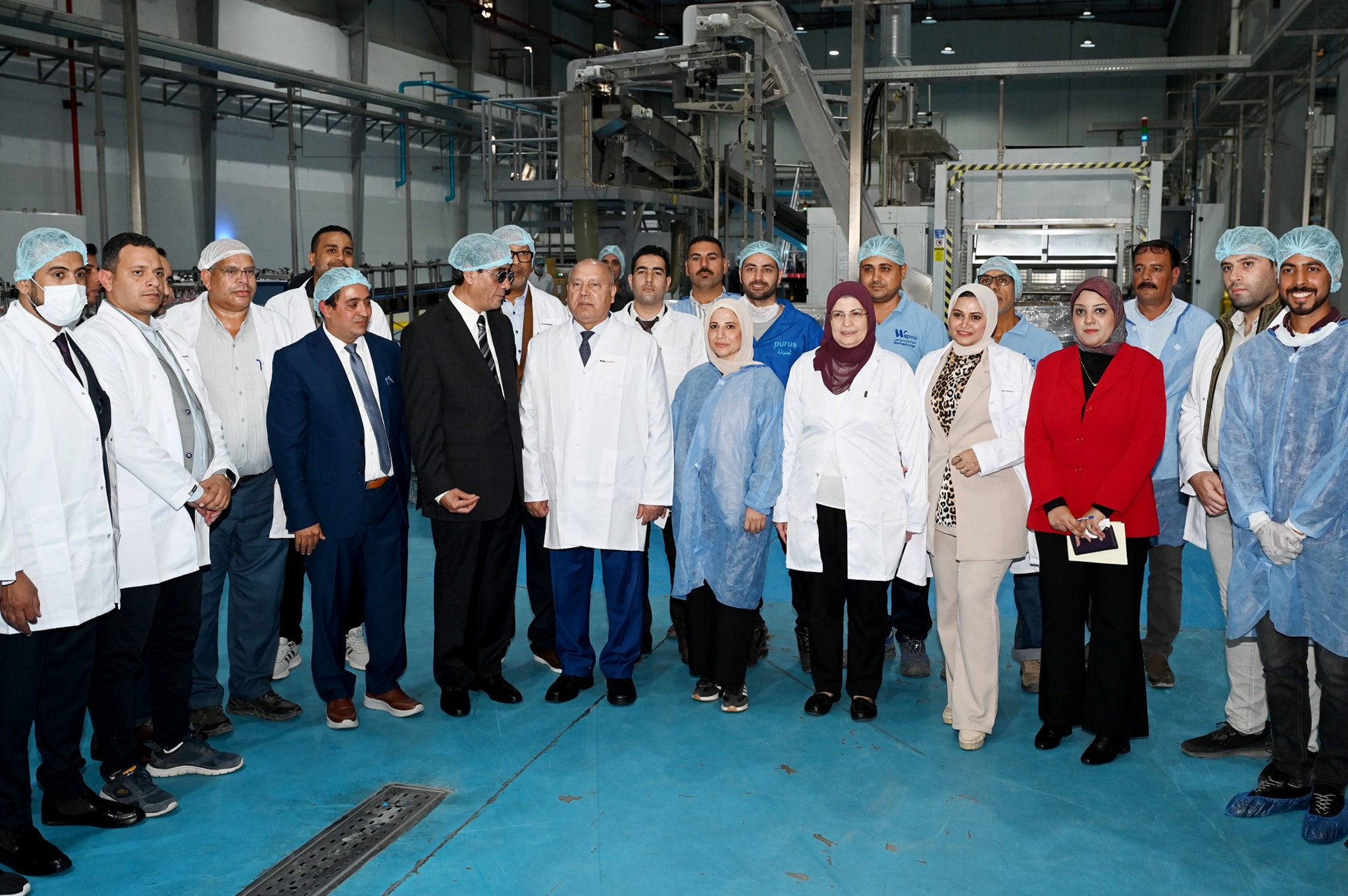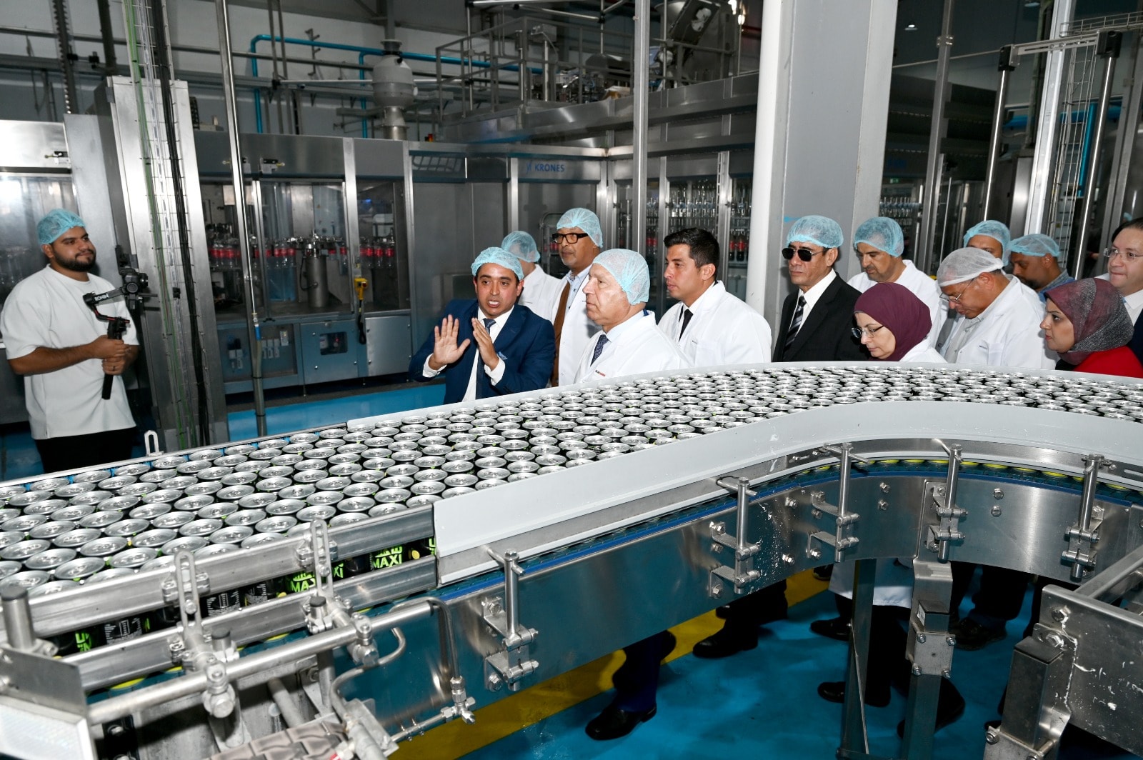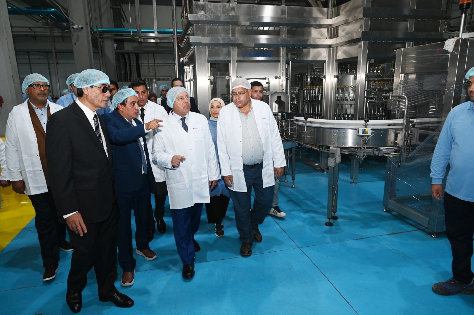 كما شملت الجولة زيارة مصنع بيورس للصناعات الغذائية والمشروبات والمياه، المقام على مساحة 12,480 متر مربع باستثمارات بلغت 575 مليون جنيه، وتصل طاقته الإنتاجية إلى 110 مليون لتر سنويًا من المشروبات الغازية، وتصل نسبة المكون المحلى الى 80%، وخلال الزيارة، تفقد الوزير منطقة تحضير المركزات، ومحطة معالجة المياه، وروبوت استقبال العبوات، ومخزن المنتج اليومي التام، بالإضافة إلى ماكينة تعبئة الكانز، ومراحل التعبئة والتغليف باستخدام الروبوت الآلي، وخط انتاج العبوات البلاستيكية وماكينة إعادة التشكيل للزجاجات، واطلع على سير عمليات التعبئة والتغليف الآلية.