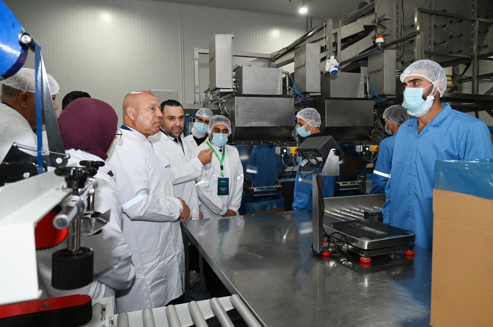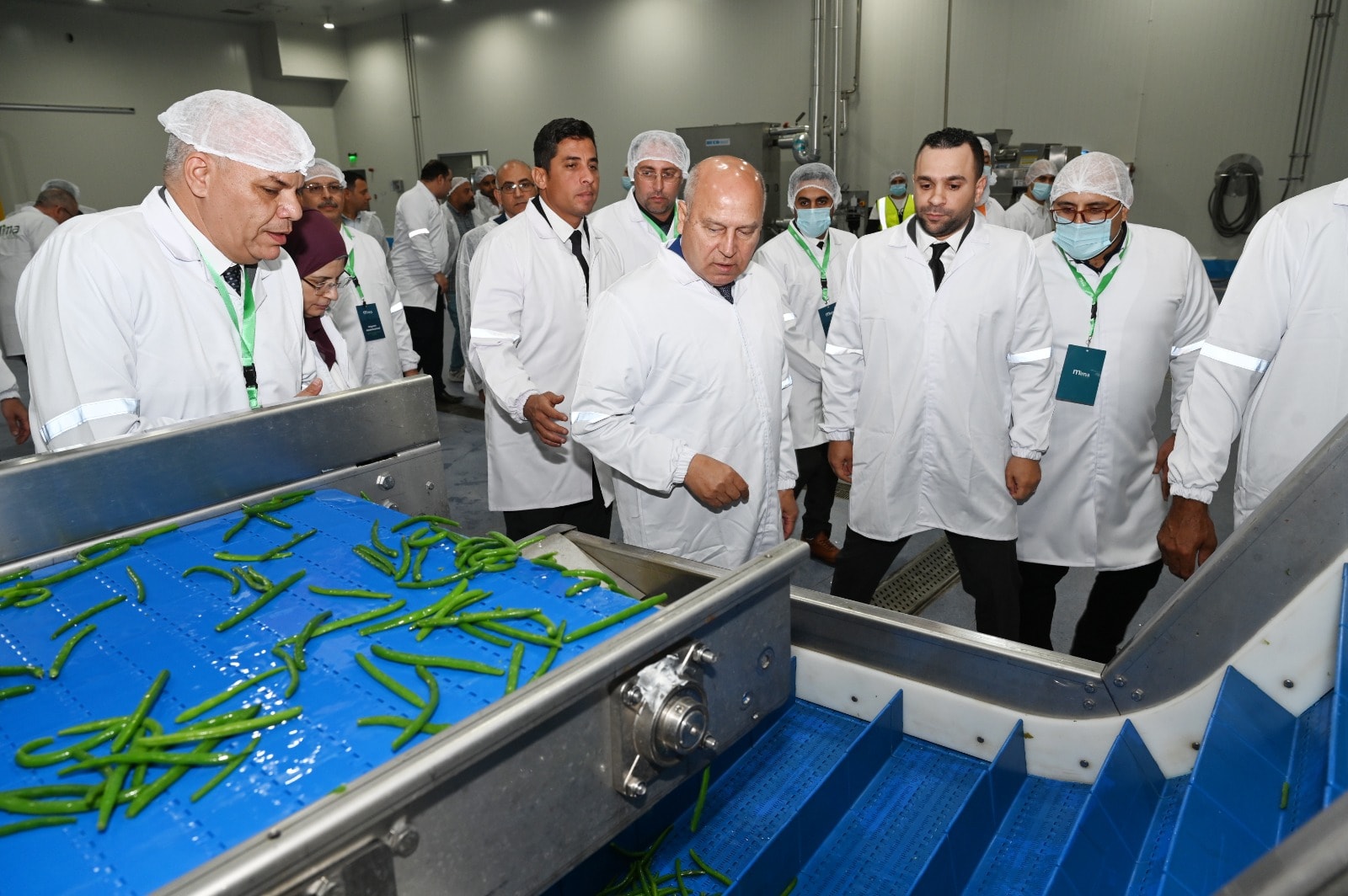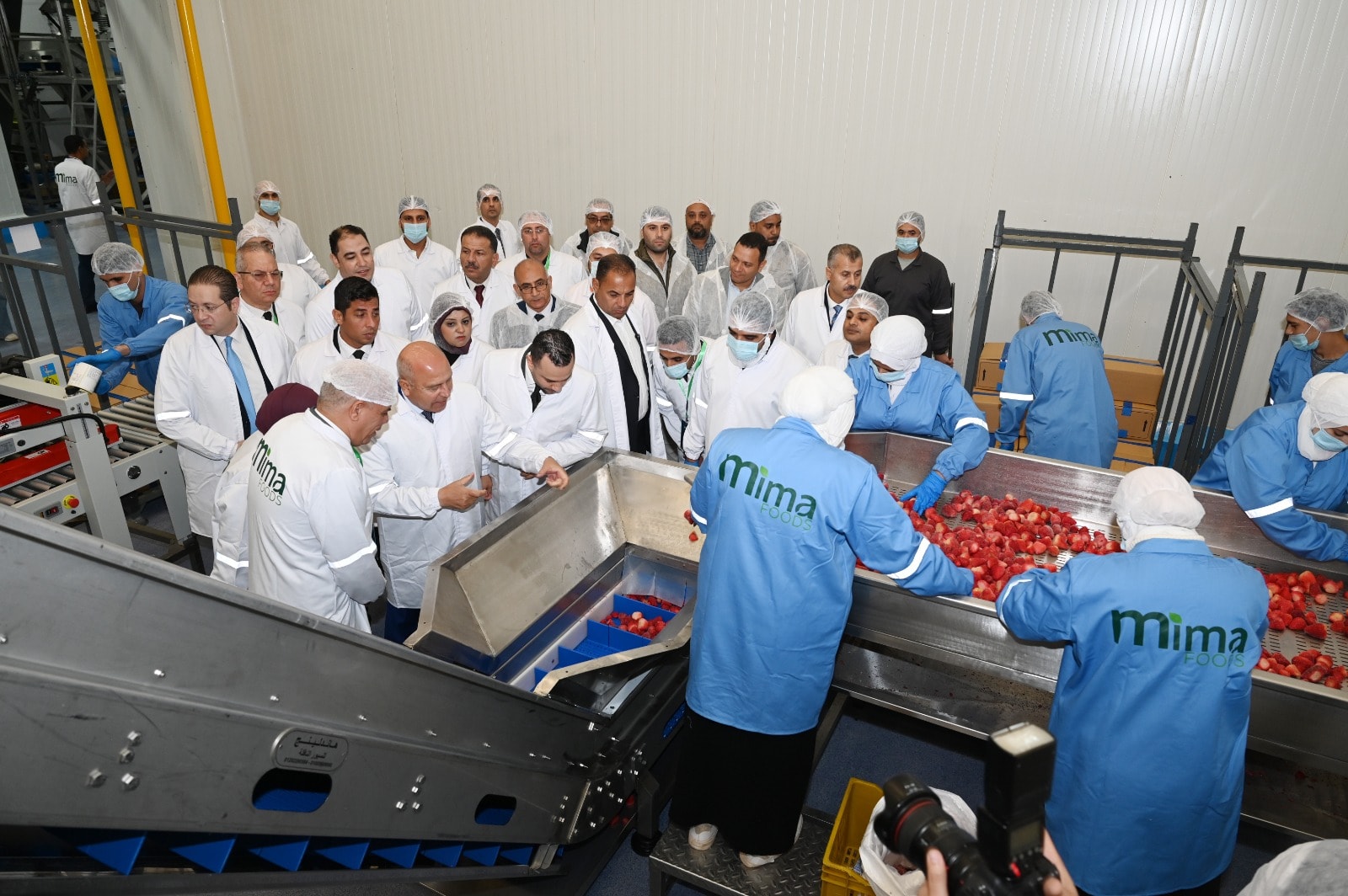 وفي إطار متابعة الدولة لبدء تشغيل عدد من المصانع الحديثة بمدينة السادات، والوقوف على جاهزيتها الإنتاجية وفق أعلى معايير الجودة، حرص الوزير على تفقد المشروعات الجديدة التي دخلت منظومة الإنتاج مؤخرًا، والتي تمثل إضافة مهمة لقطاع الصناعات الغذائية وتعزز خطط التوسع الصناعي وتعميق التصنيع المحلي، حيث توجه الوزير عقب ذلك إلى مصنع ميما فودز مجموعة الأغذية المتنوعة للتجارة المقام على مساحة 12,800 متر مربع بمدينة السادات، باستثمارات تصل إلى مليار جنيه، ويعد المصنع من أهم المنشآت العاملة في مجال تصنيع جميع أنواع الخضروات والفواكه المجمدة، بطاقة إنتاجية تصل إلى 26 ألف طن سنويًا، وخلال الزيارة، اطلع الوزير على معمل الميكروبيولوجي، ومراحل التصنيع المتكاملة بدءًا من الغسيل والسلق والتبريد والتجميد، وصولًا إلى التعبئة والتغليف.